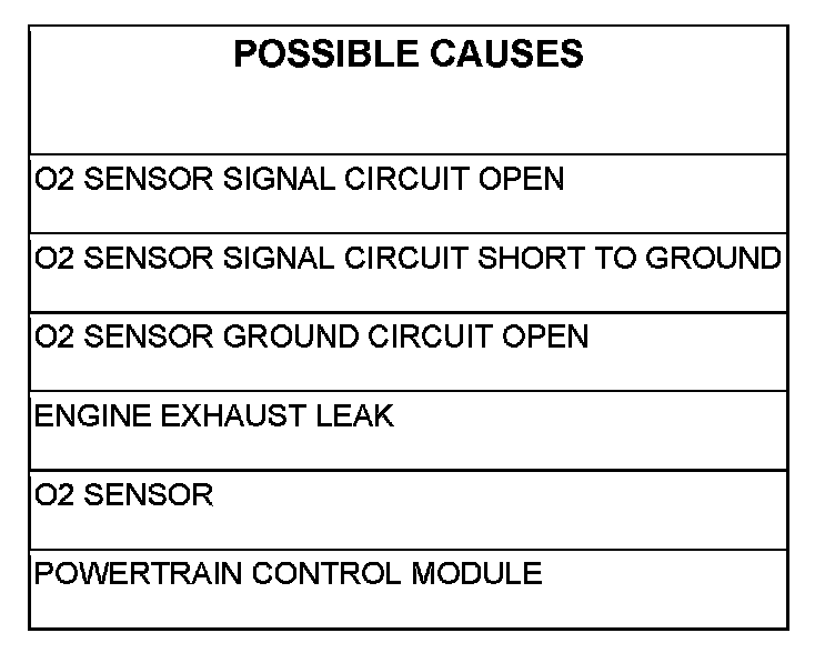- Set Condition: O2 Sensor voltage is less than 0.15 volt for approximately 5 seconds. Signal stays at center: The O2 Sensor voltage stays between 0.4 and 0.6 volt for more than approximately 15 seconds after the O2 Sensor heater has been ON for at least 220 seconds.