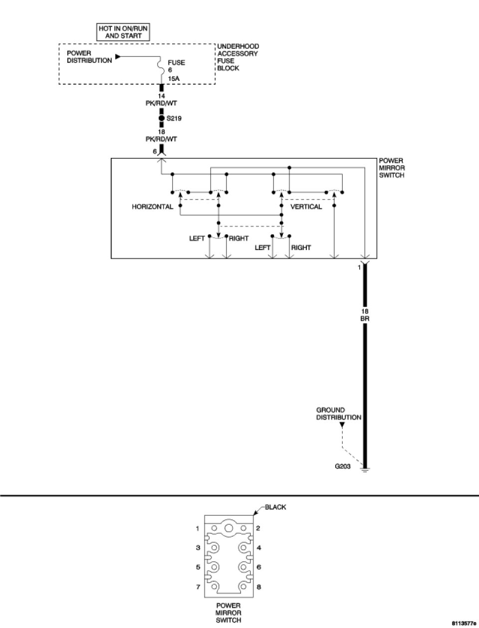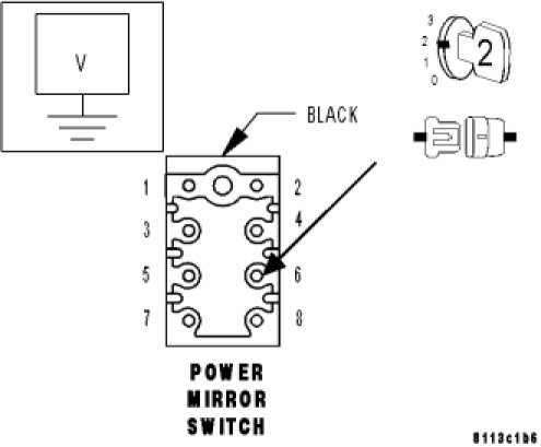 - Repair the Ground circuit between the Power Mirror Switch harness connector and ground for an open.