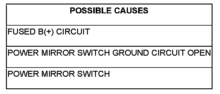 - Repair the Power Mirror Switch Fused B(+) circuit for an open.