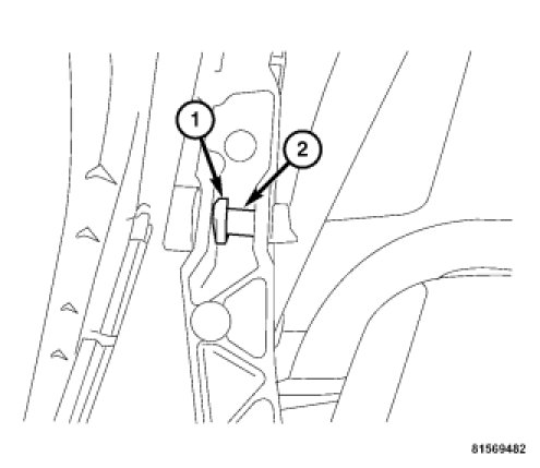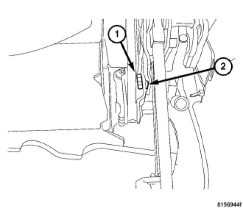 8. Remove the 2nd rail middle retaining clip (1) and pin (2).