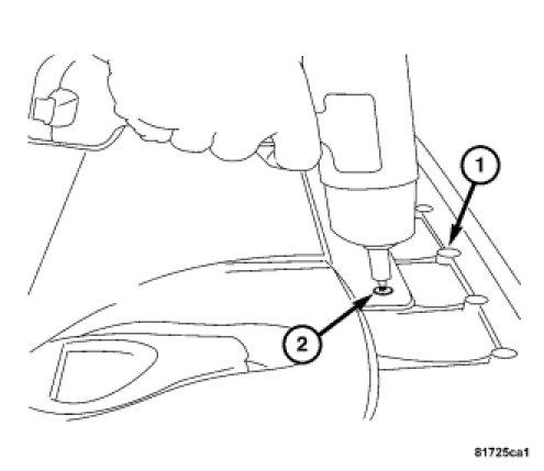 12. Install the top catch covers (2) to the header bow (1). Tighten screws to 4.25 - 5.75 Nm (38-51 in. lbs.).