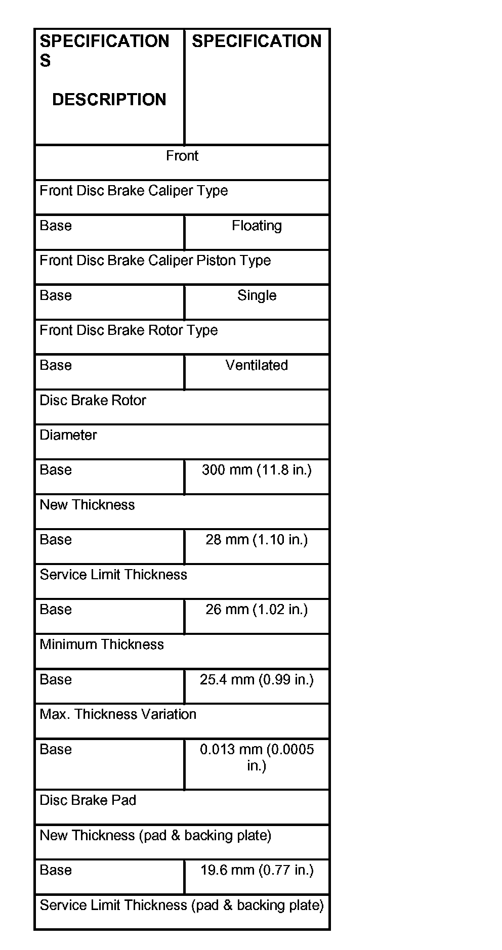 Brakes and Traction Control: Specifications