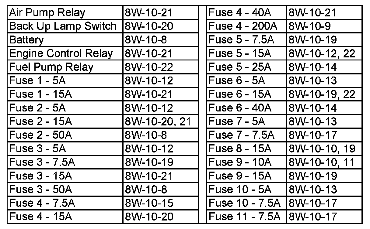 Power Distribution Circuits (Air Pump Realy - Fuse 11):