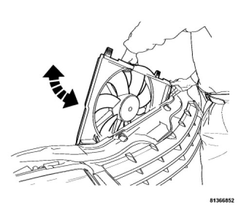 1. Gently lower the radiator fan into the vehicle.