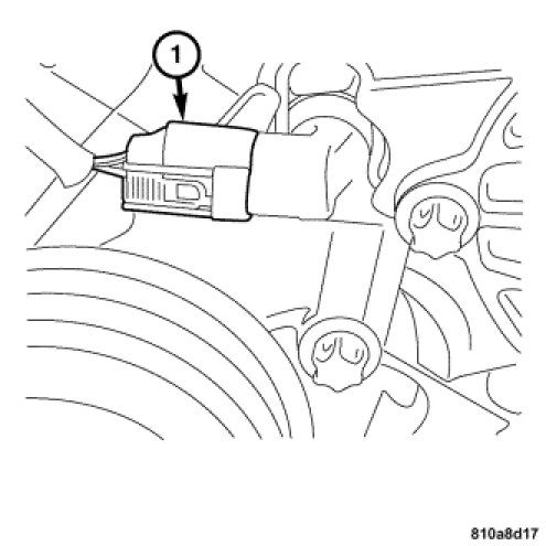 3. Install the engine coolant temperature sensor and retaining clip (1).