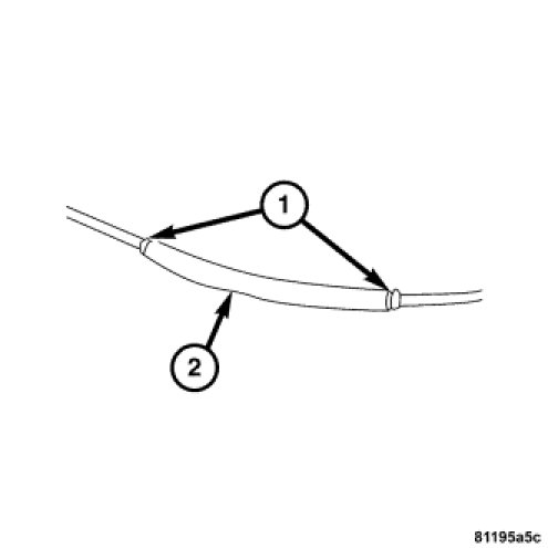 6. Center the heat shrink tubing(2) over the joint and heat using a heat gun. Heat the joint until the tubing is tightly sealed and sealant(1) comes out of both ends of the tubing.