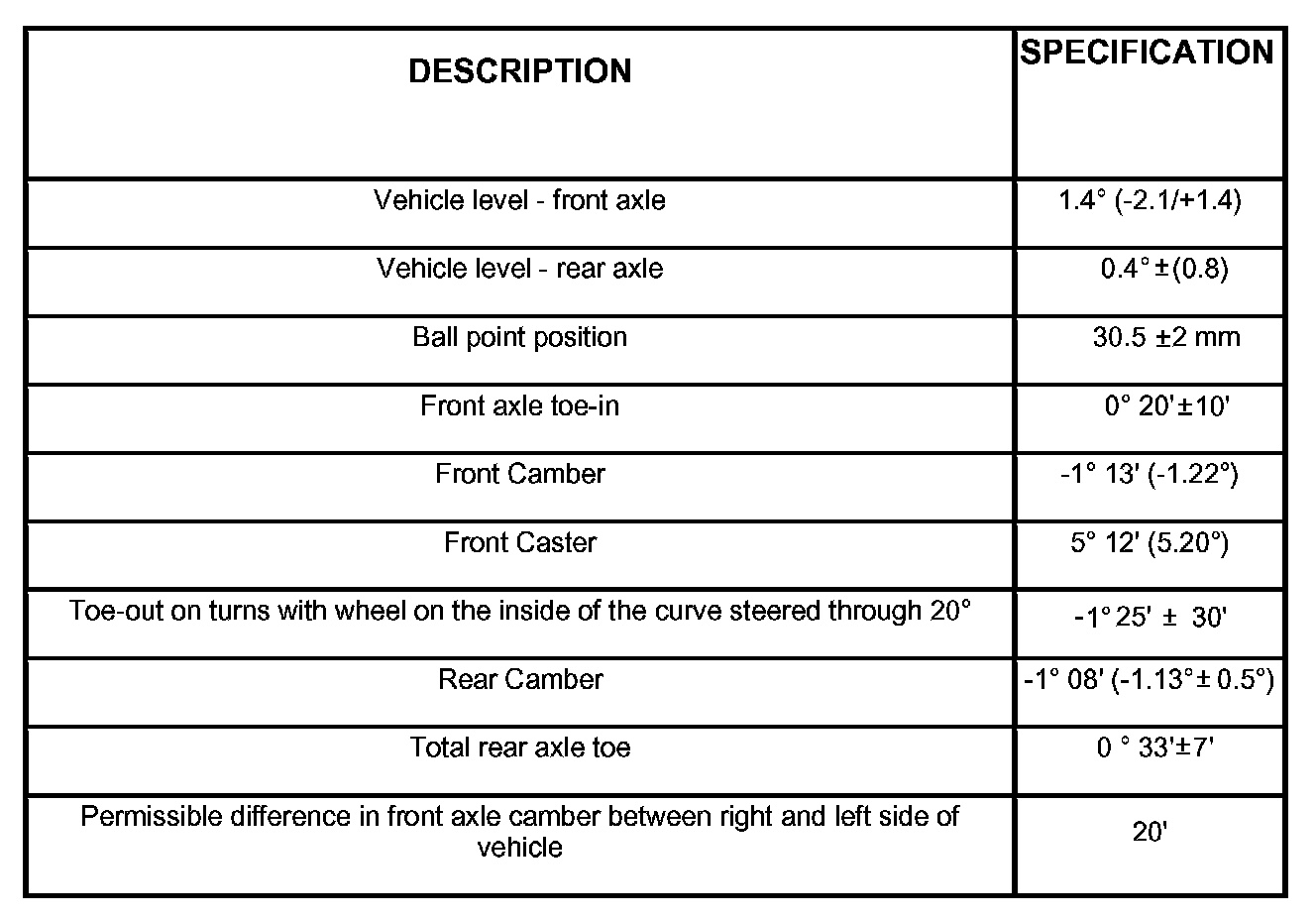 Wheel Alignment Specifications