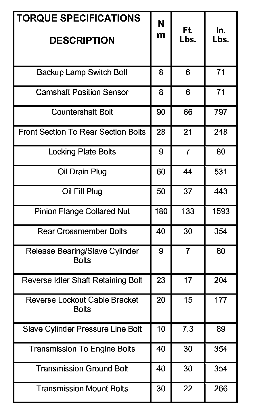 Torque Specifications:
