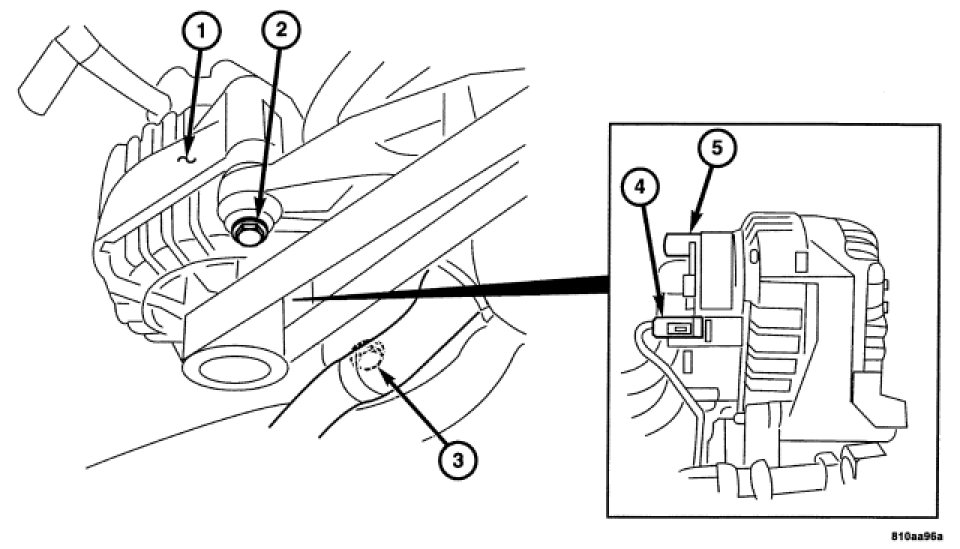 4. Install the upper and lower generator mounting bolts. Tighten the generator mounting bolts to 42 Nm (31 ft. lbs.).