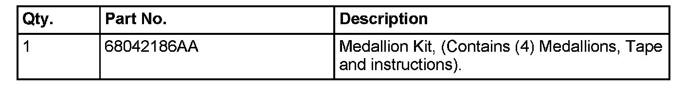 If the medallion on the center cap of a wheel(s) needs replacement, a parts kit is available to replace the medallions only. All medallions need to be replaced.