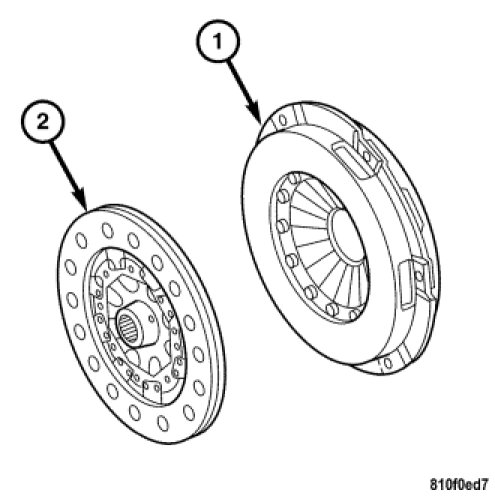 5. Remove the clutch cover (1) and the clutch disc (2).