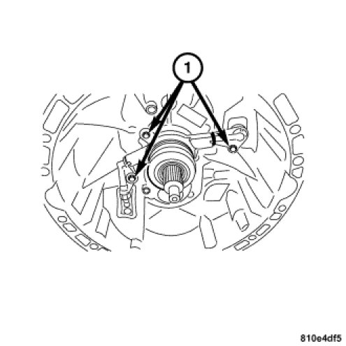 2. Install the slave cylinder/release bearing bolts (1). Tighten the bolts to 10 Nm (89 in. lbs.).