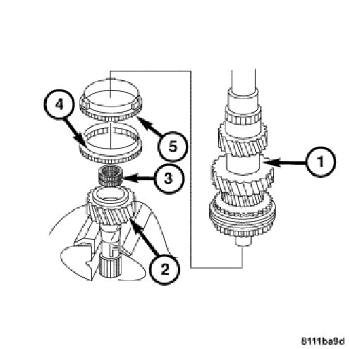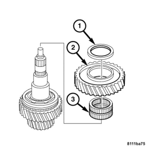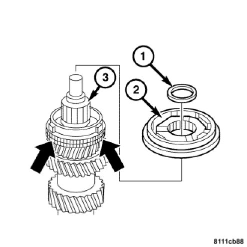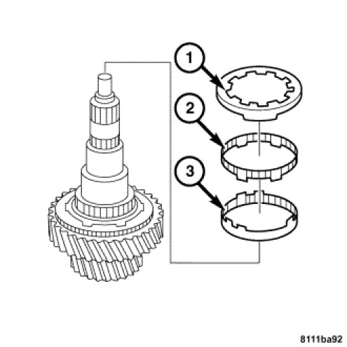 8. Remove the friction ring (1), cone ring (2), and the synchronizer ring (3).