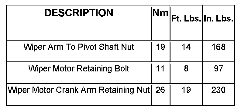 Wiper and Washer Systems: Specifications