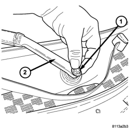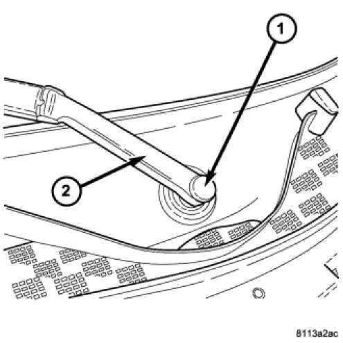 1. Install the pivot end of the wiper arm (2) on the wiper pivot shaft.