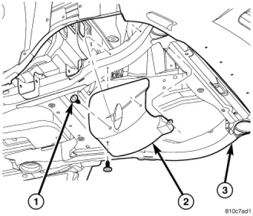 2. Install new push pins attaching accessory drive splash shield to engine cradle.