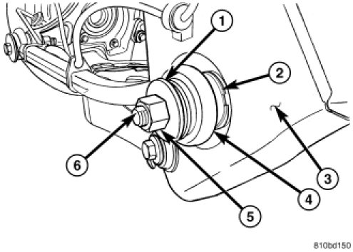 If front camber is found not to meet alignment specifications, it can be adjusted using an available camber adjustment bolt package. Before installing a camber adjustment bolt package on a vehicle found to be outside the specifications, inspect the suspension components for any signs of damage or bending.