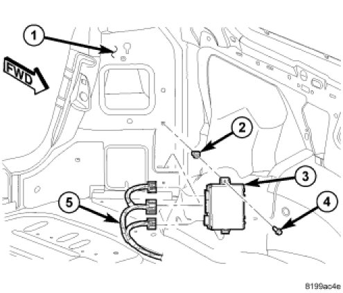 1. Position the power liftgate control module (3) into the vehicle.