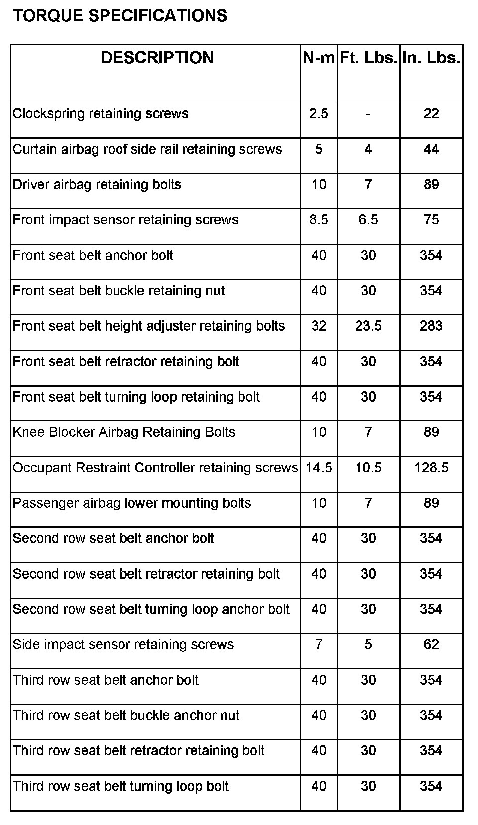 Restraints and Safety Systems: Specifications