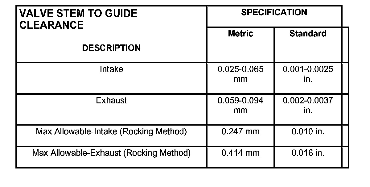 Valve Stem To Guide Clearance: