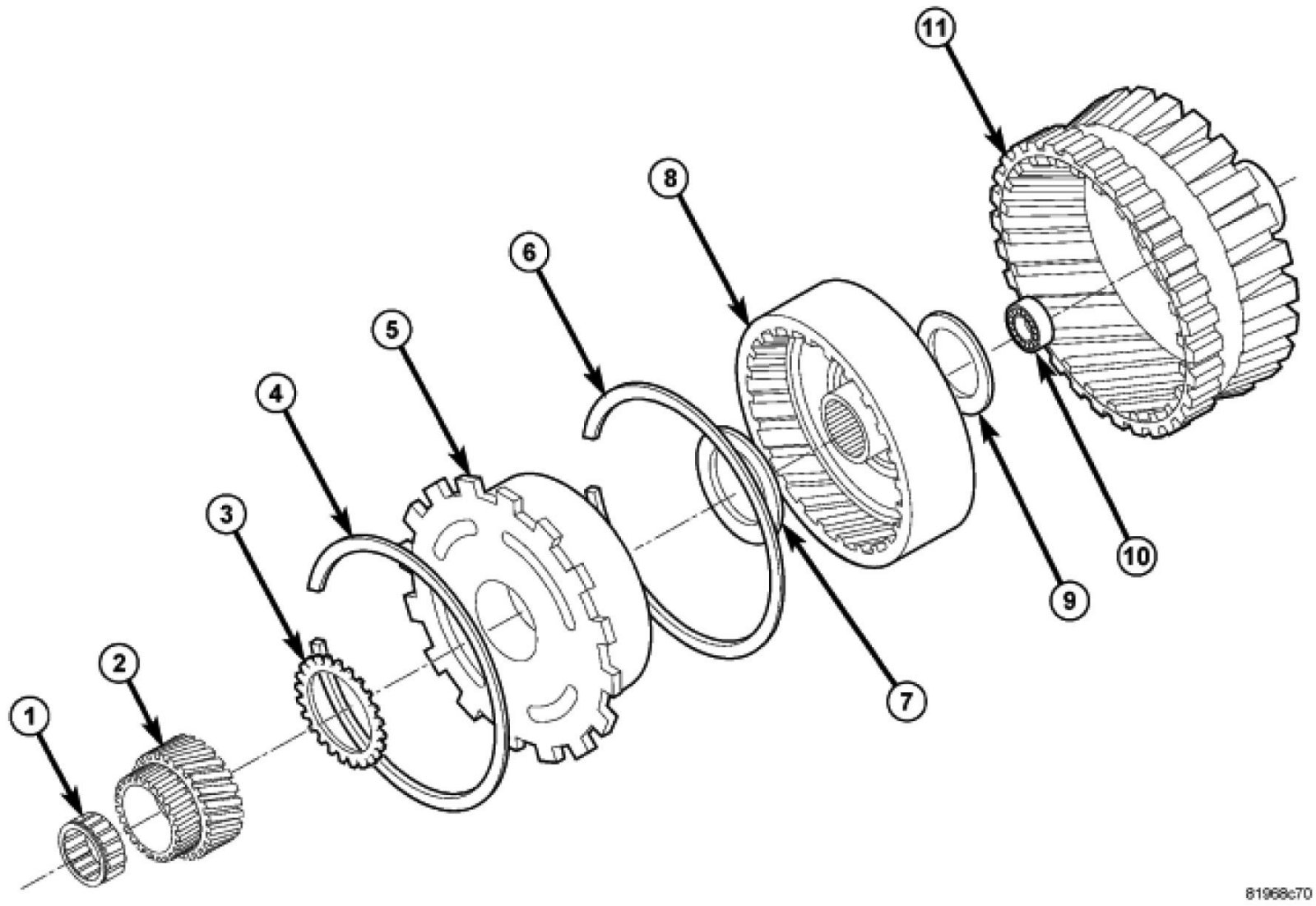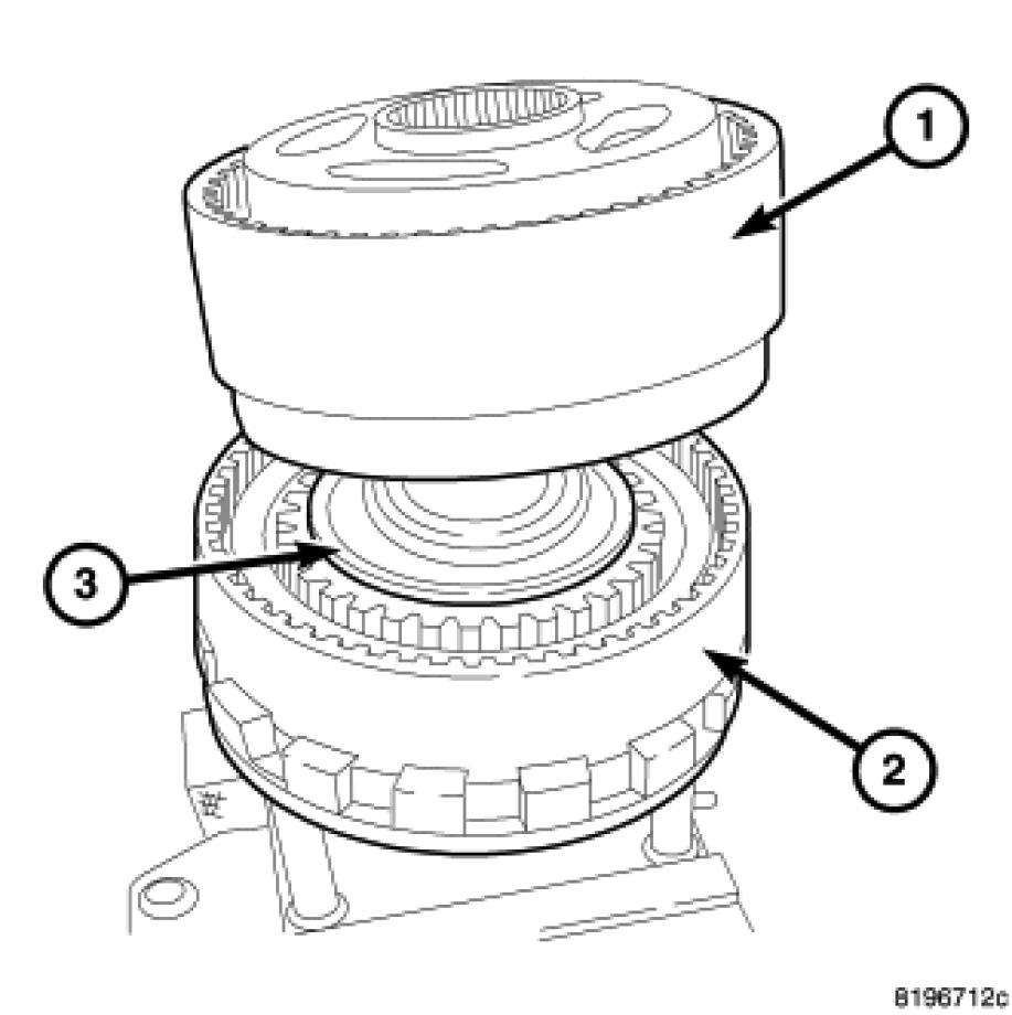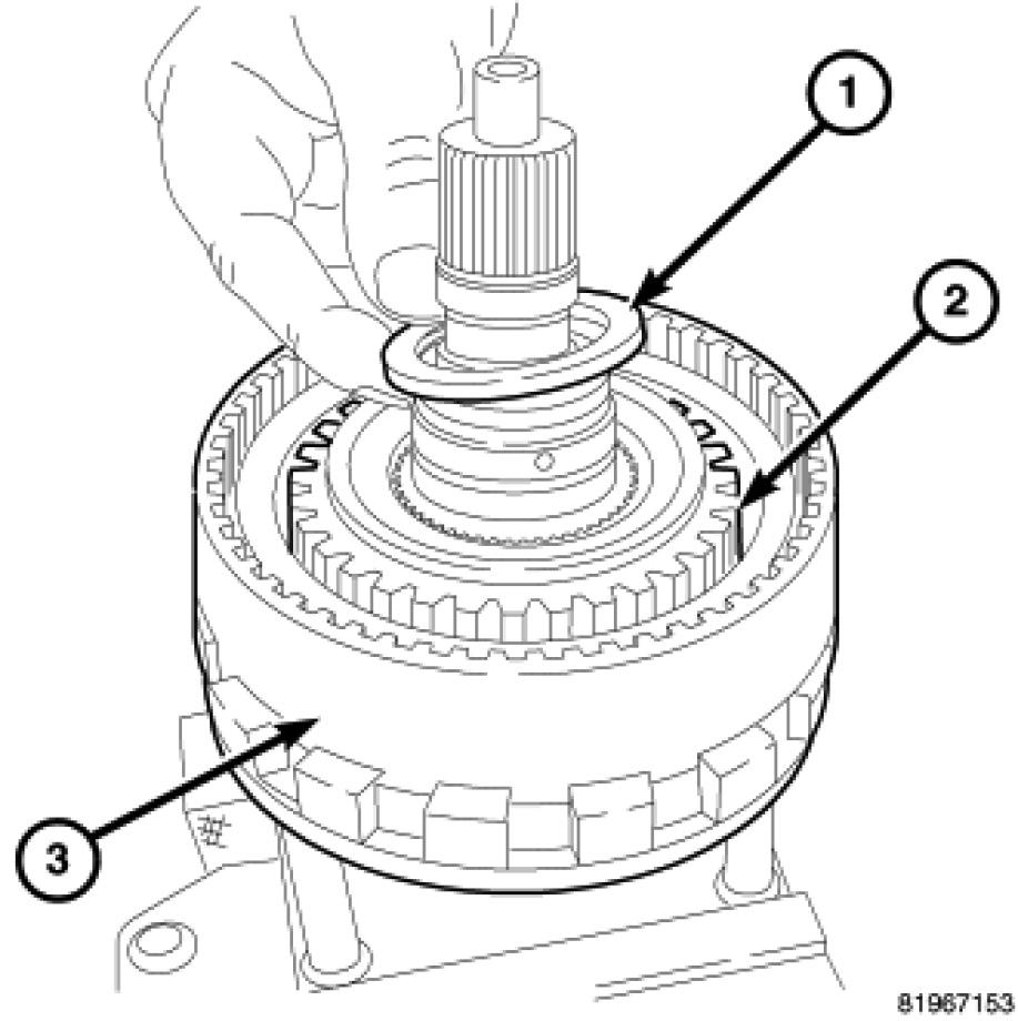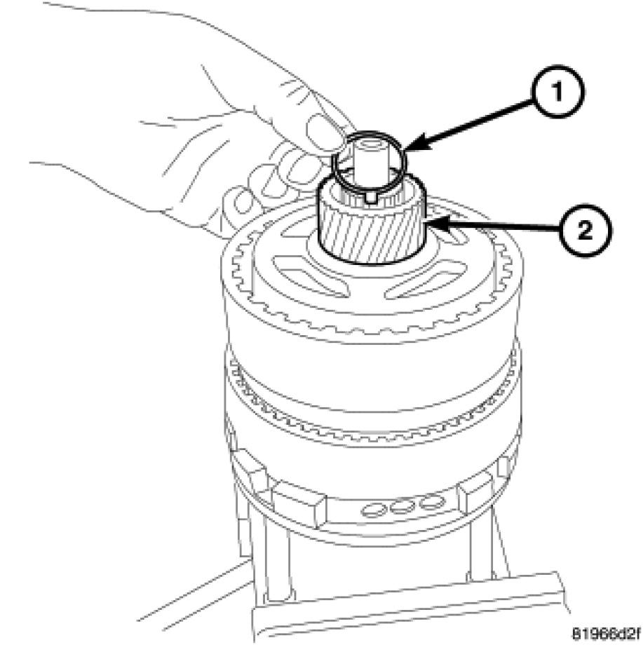 45. Install the planetary gear set / output hub (1) onto the direct clutch.
