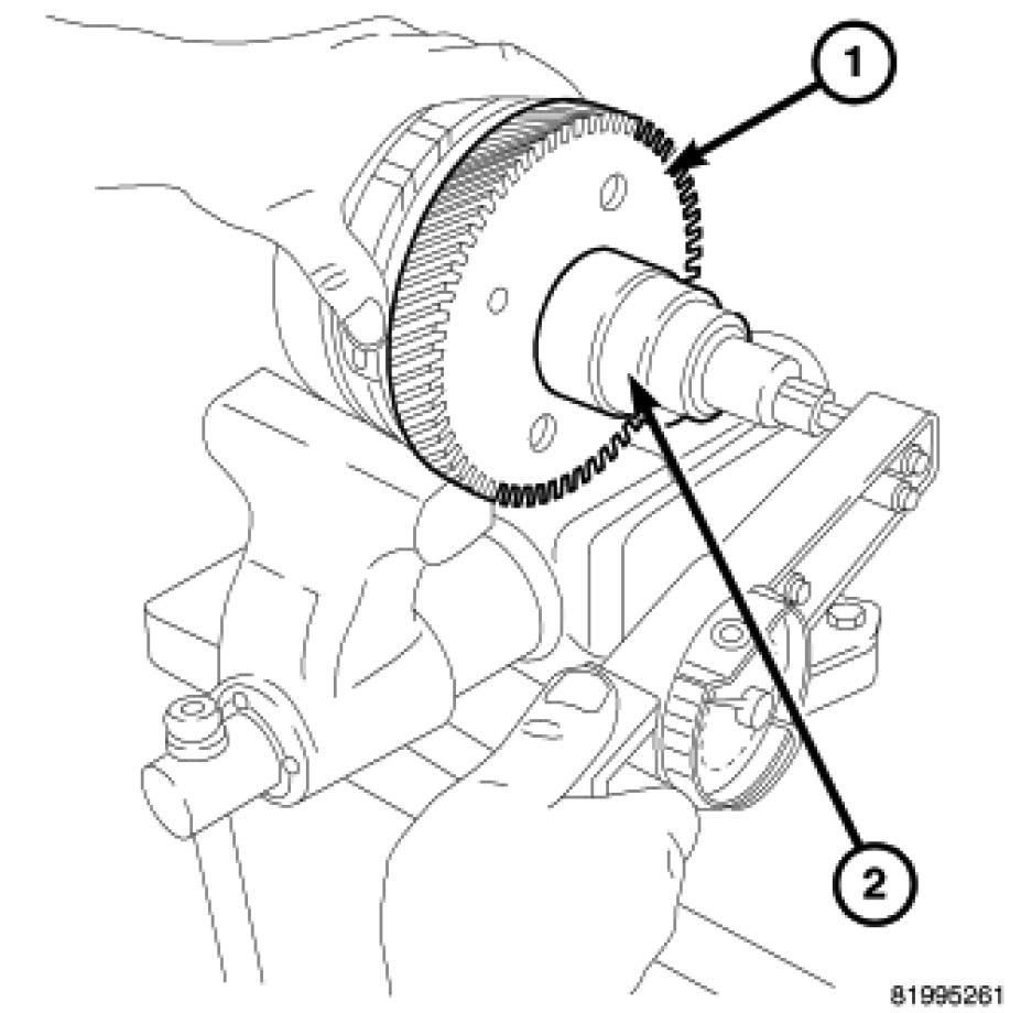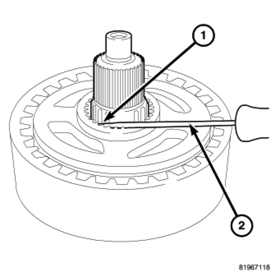 18. Install the Bearing Retainer Assembly Remover 9908 (1) onto the low clutch (2).
