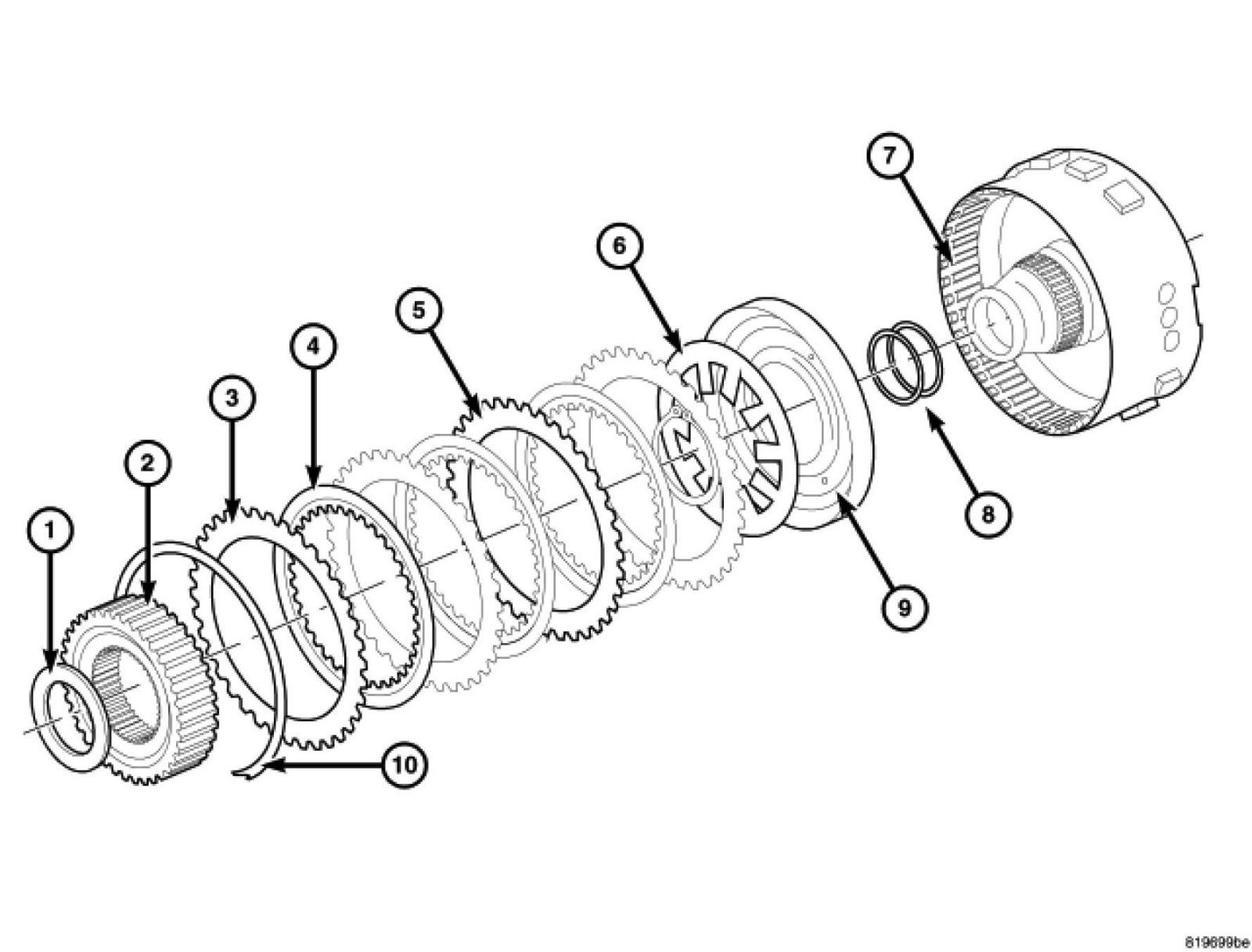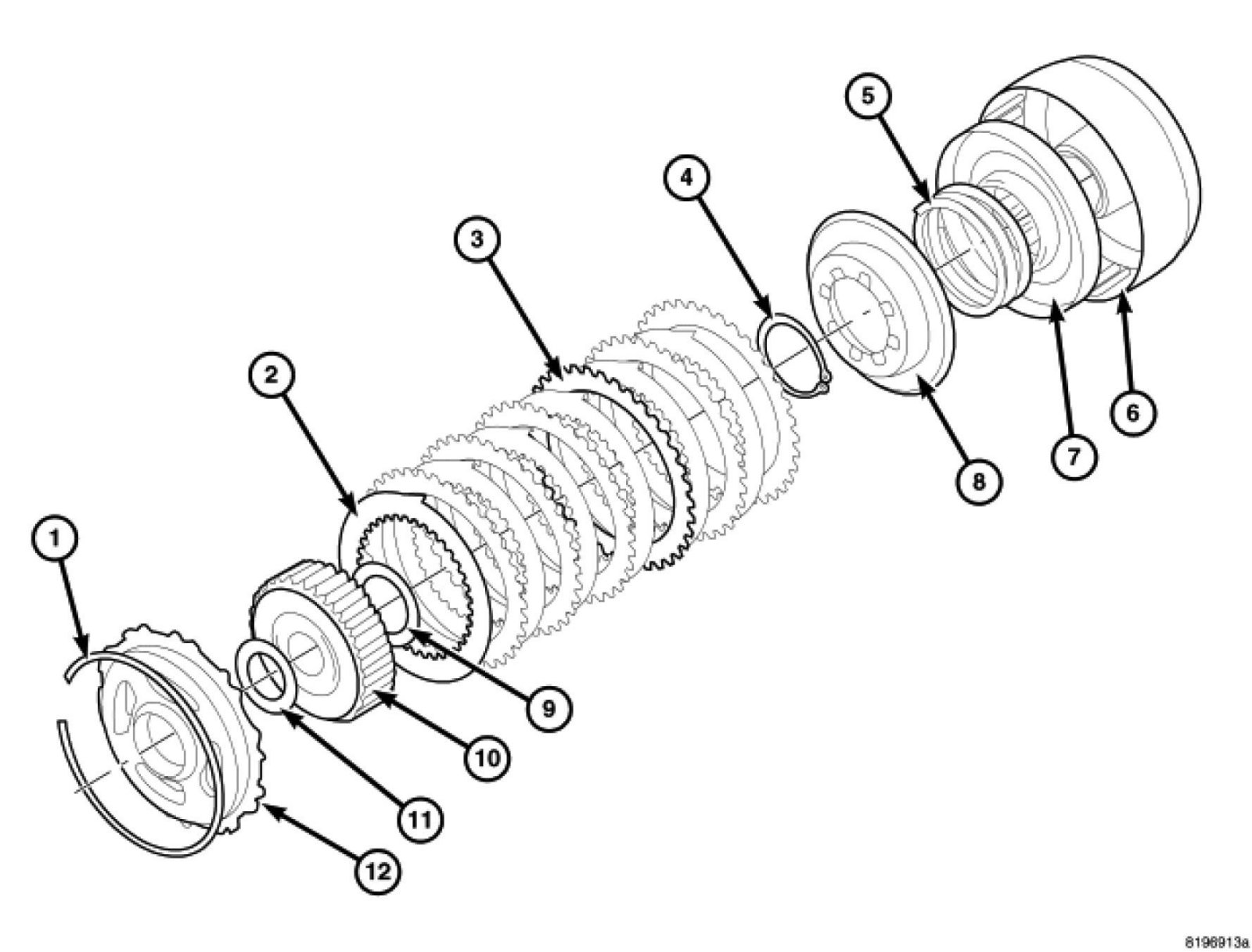 21. Install the direct clutch retainer (8) onto the retainer (7).