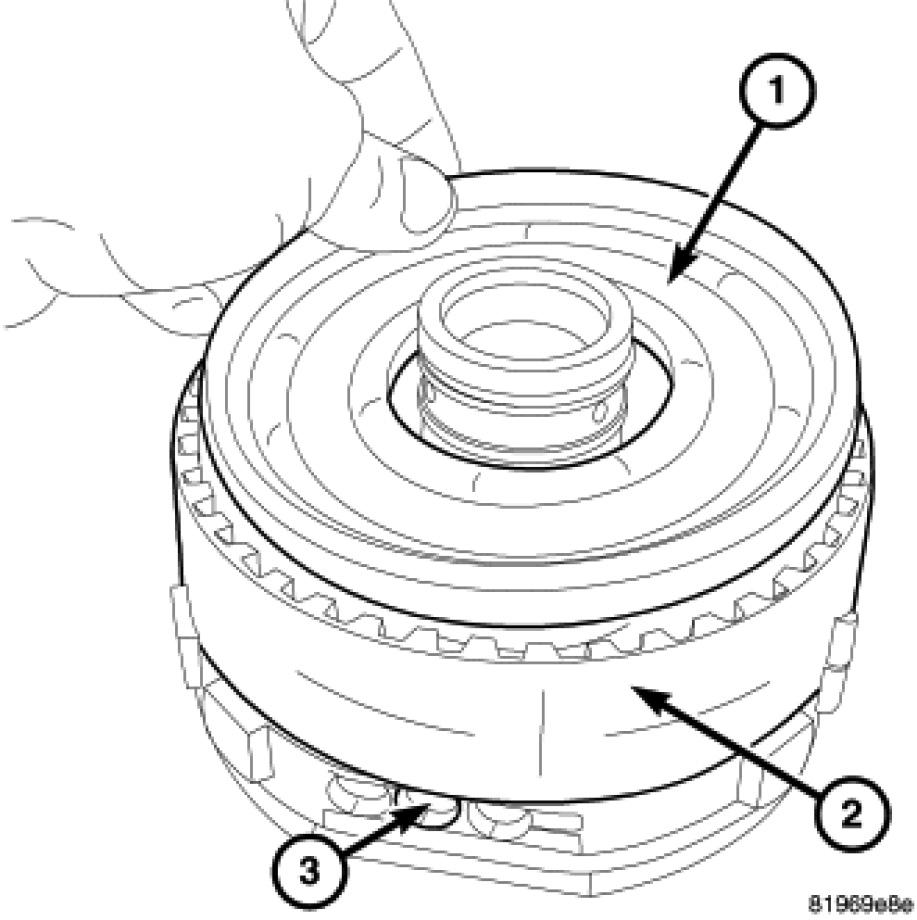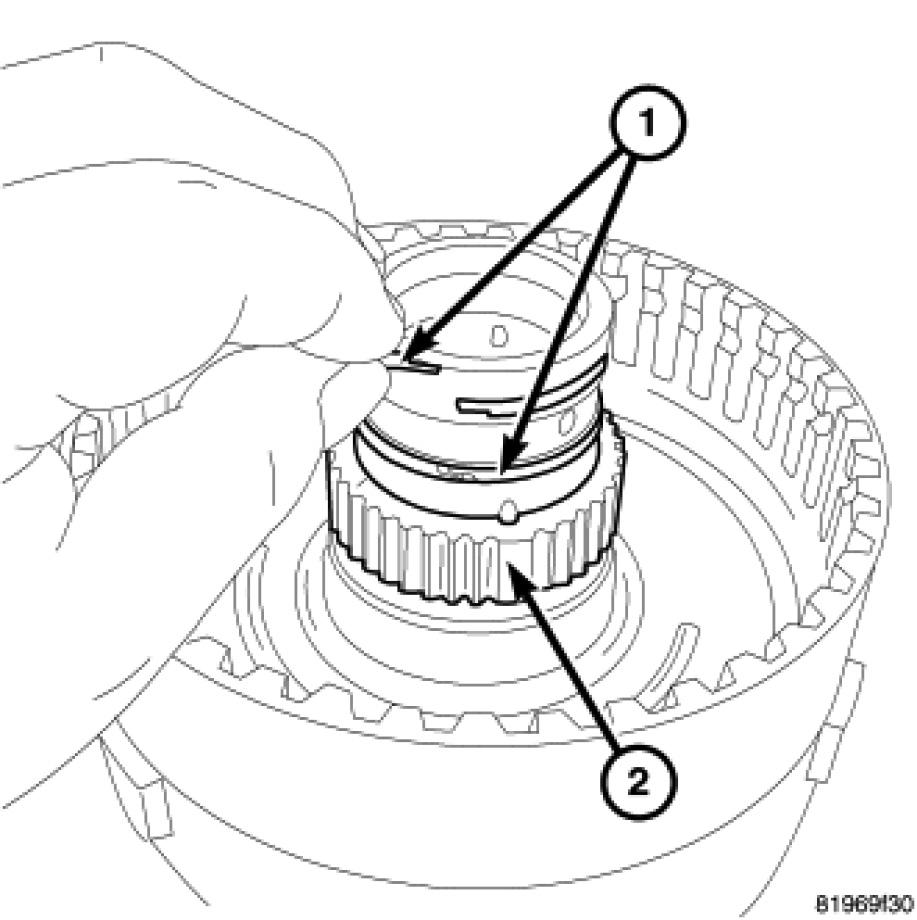 19. Install the overrunning clutch (1) into the low clutch (2).