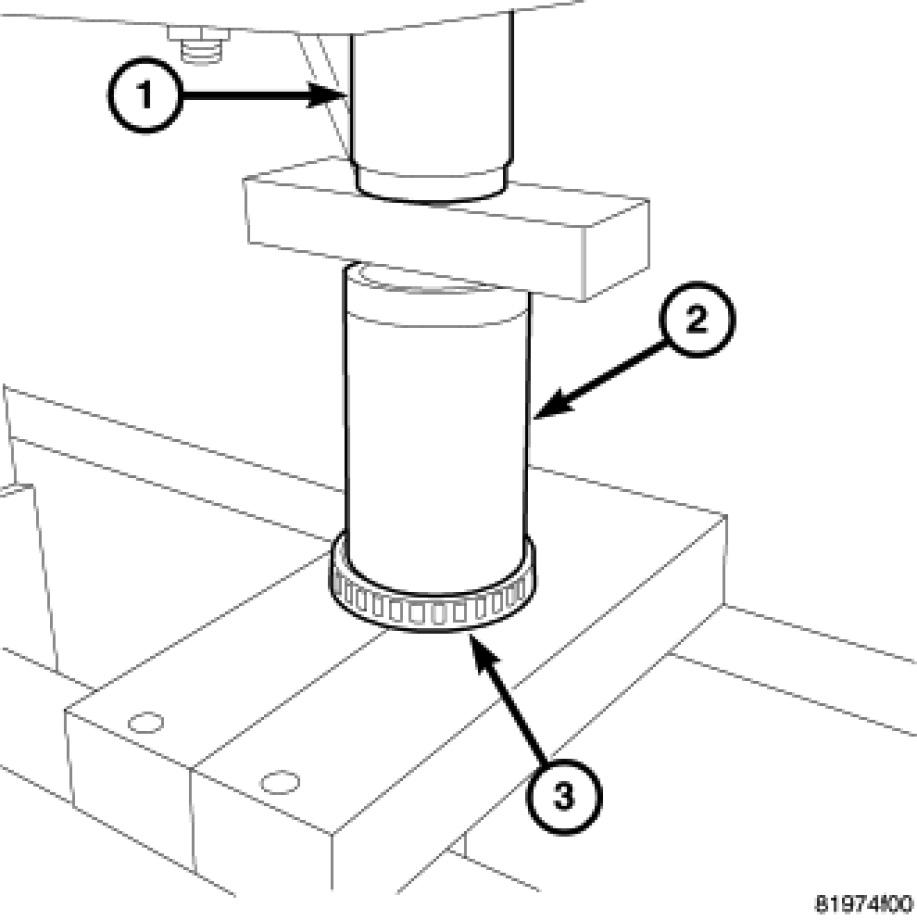 11. Using Installer 6756 (2) and a Press (1) install the underdrive compounder bearing (3) to transfer shaft.