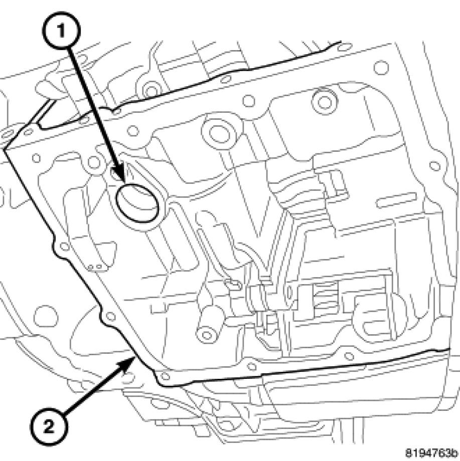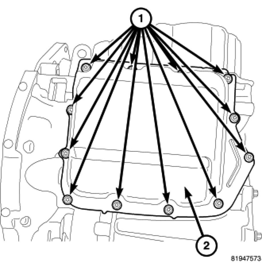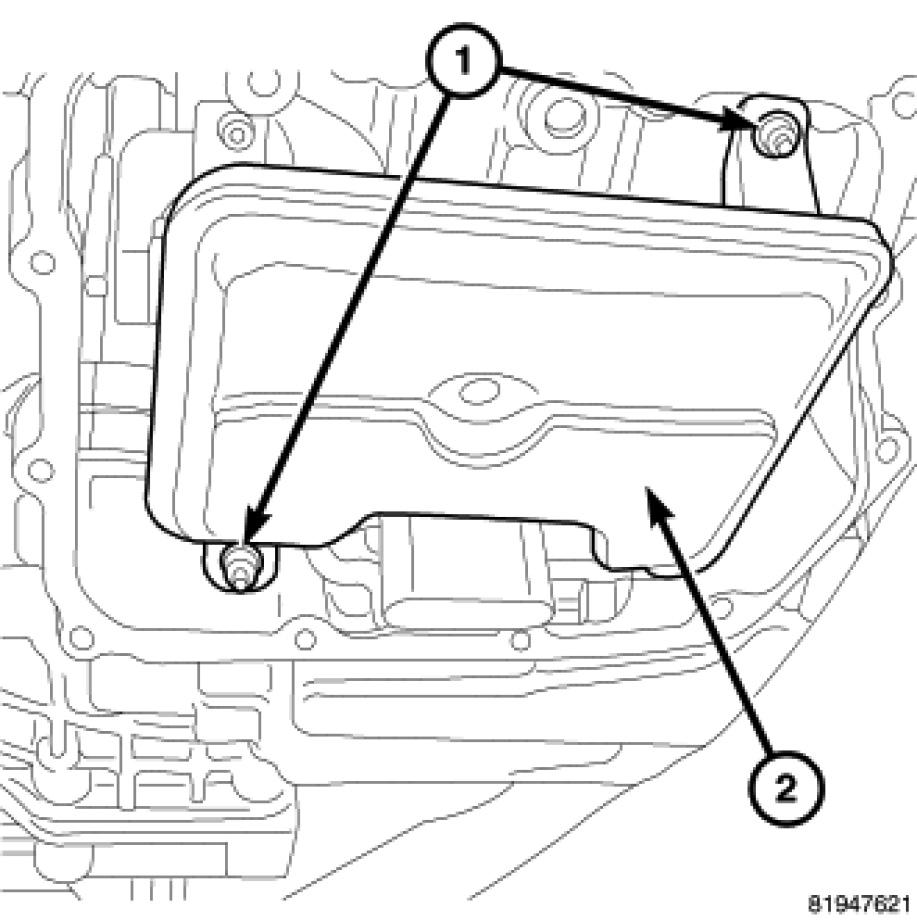 116. Install the fluid filter oil pan, use a bead of MOPAR(R) ATF RTV (MS-GF41).