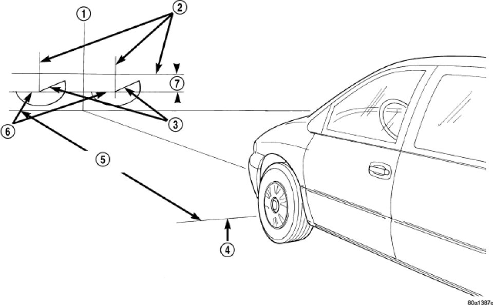 1. Position vehicle on a level surface perpendicular to a flat wall 7.62 meters (25 ft.) away from front of front lamp unit lens.