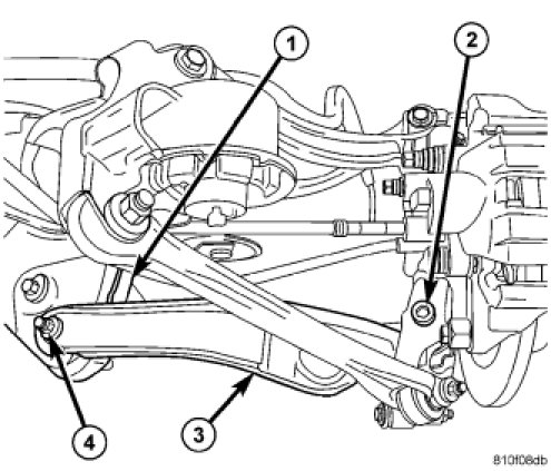 8. Remove bolt and nut (4) fastening spring link to crossmember (1).