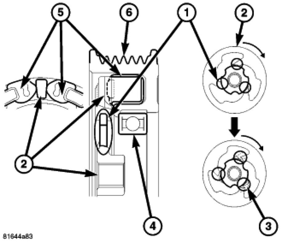 The bridges (1) located on the non-serviceable compressor hub (2) are designed to break away in the event of compressor seizure. Examine the bridges for separation or cracks (3). Damage to the bridges are an indication of excessive compressor torque, which is most likely caused by compressor failure.