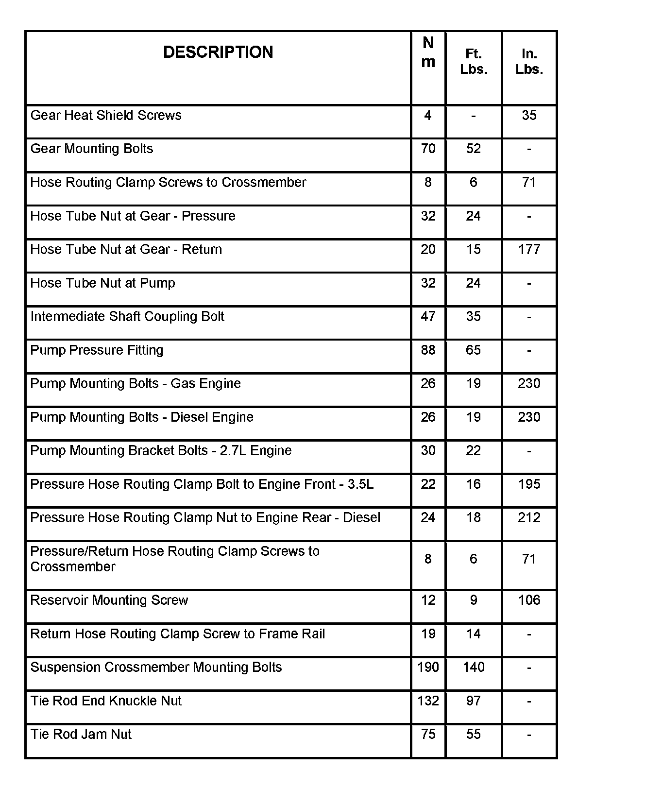 Steering Fastener Torque: