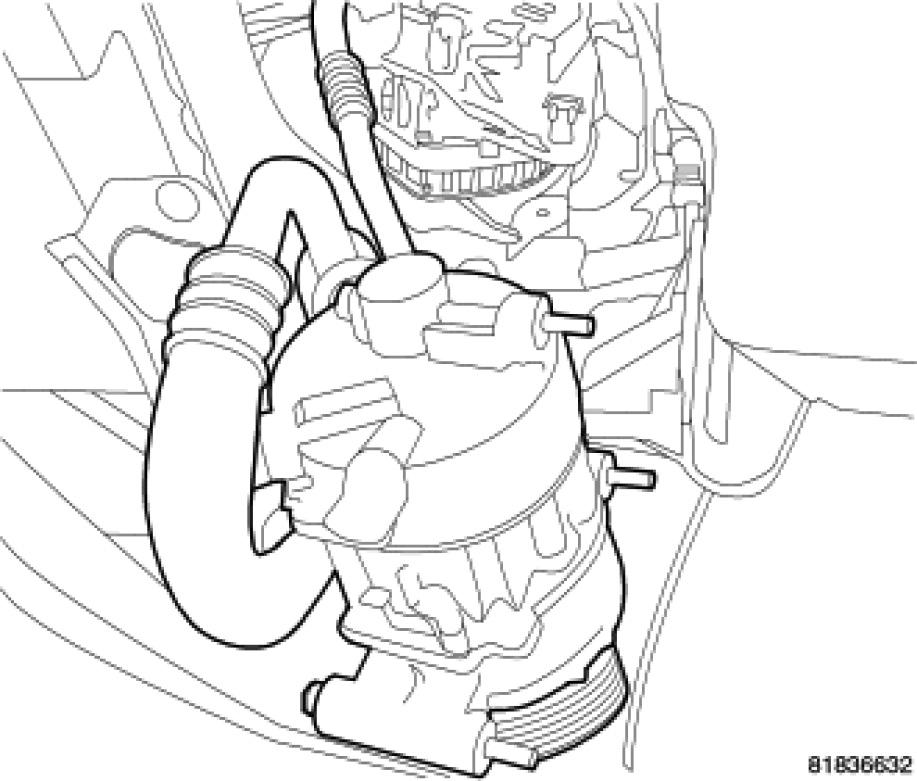 8. Loosen the A/C compressor and relocate, pull down and to outboard side of vehicle to make room to remove generator.
