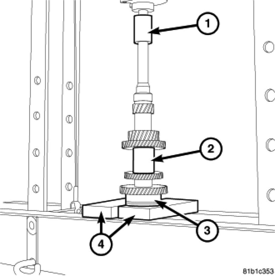 3. Using Bearing Splitter 1130 (4) and a Press (1) install the input shaft bearing race (3) onto the input shaft (2).