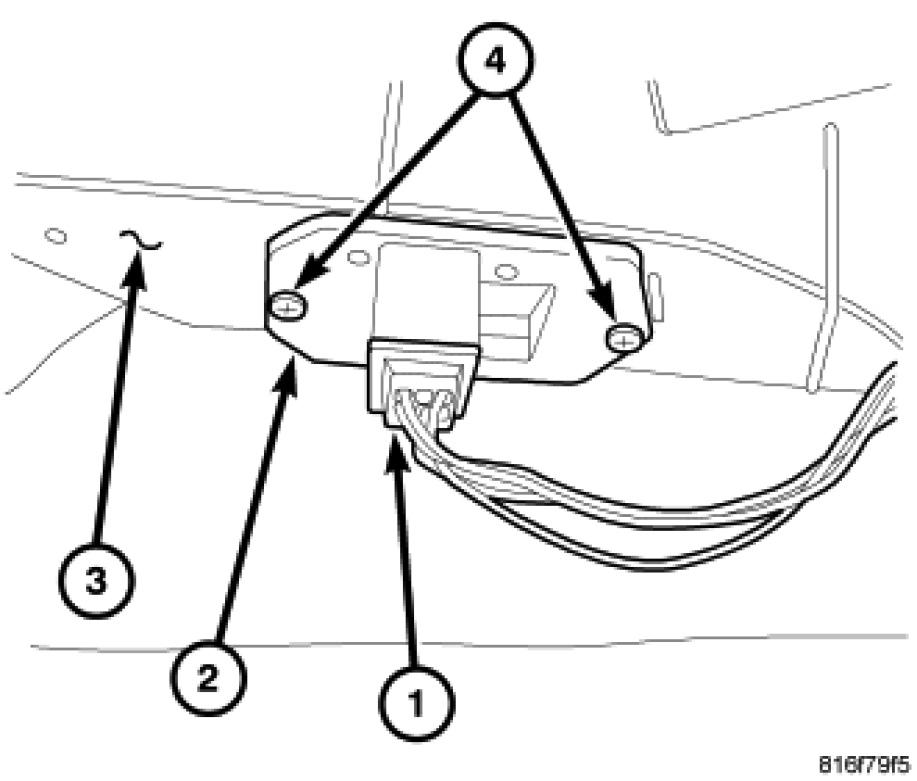 3. Remove the two screws (4) that secure the blower motor resistor to the HVAC housing and remove the resistor.