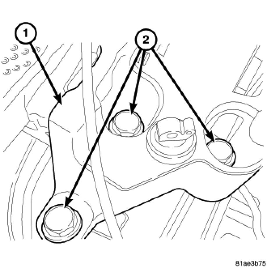 7. Remove PTU-to-transaxle mount bracket upper bolts (2).