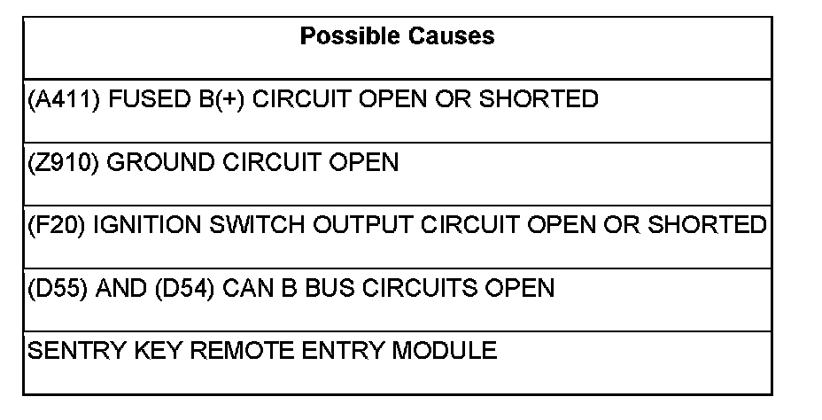No Response From WCM (Wireless Control Module) (Sentry Key Remote Entry Module)