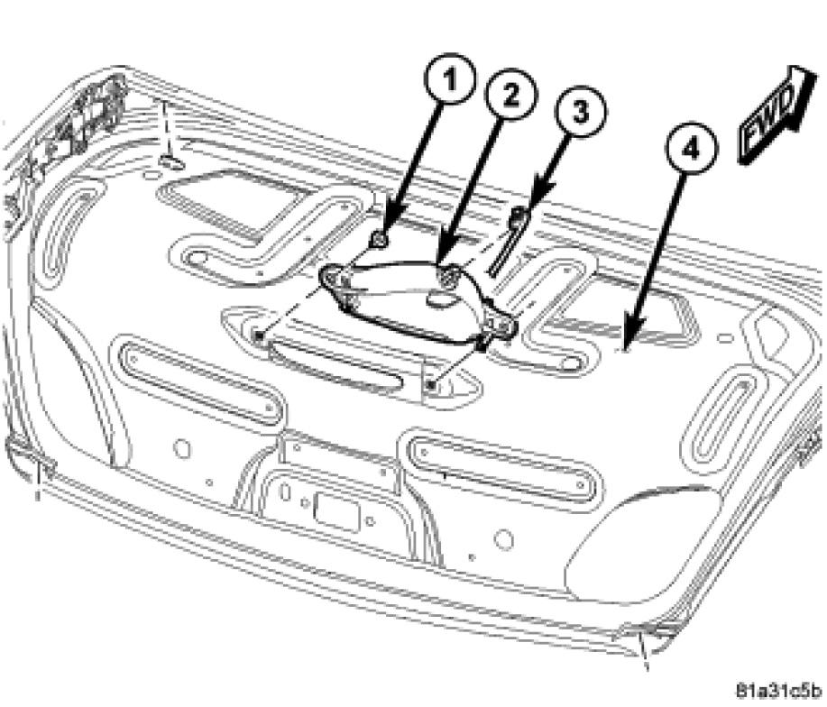 Install screws (1) attaching CHMSL unit (2) to decklid (4).
