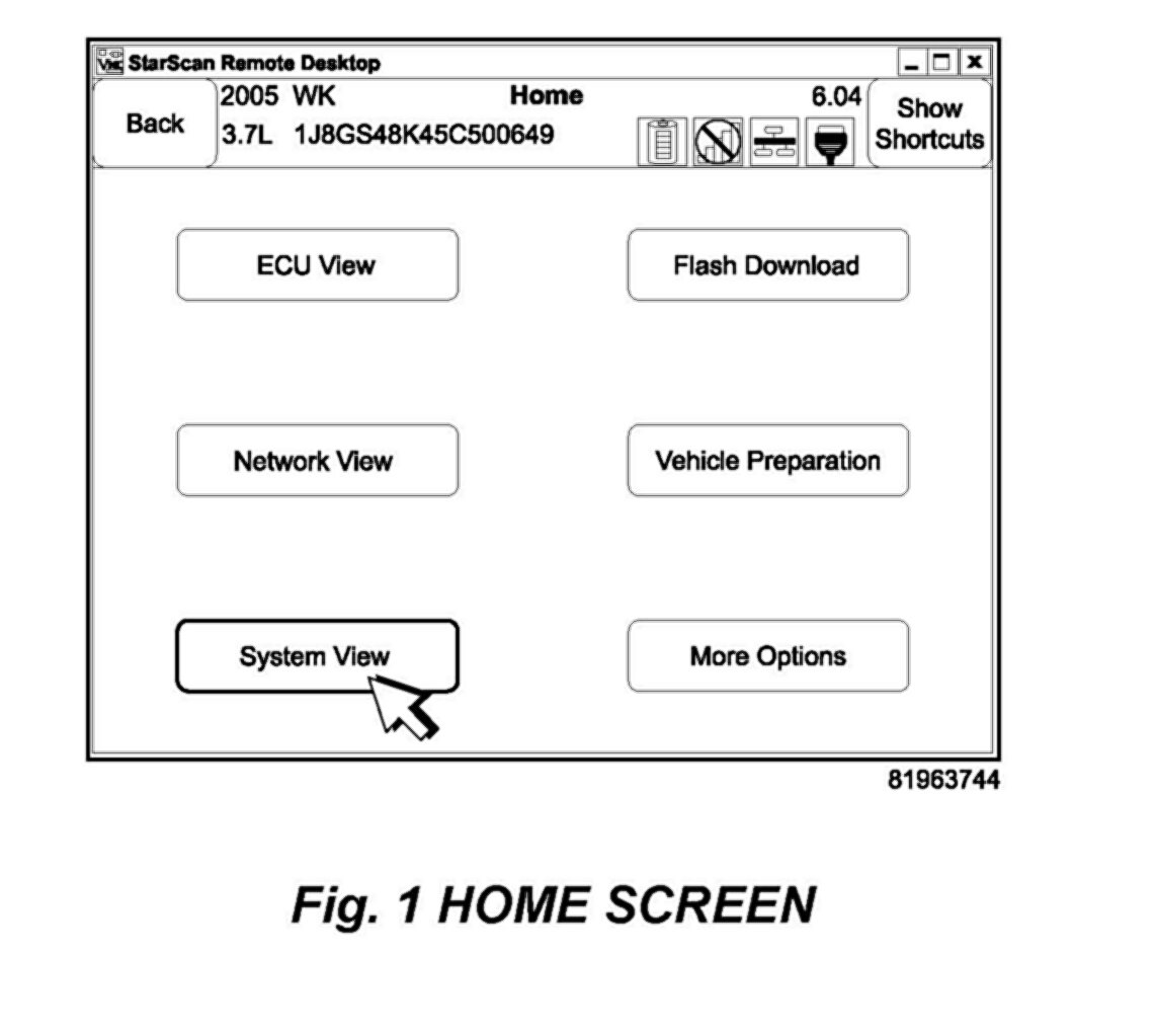 2. Using the StarSCAN(R) at the "Home" screen, select "System View" (Fig. 1).