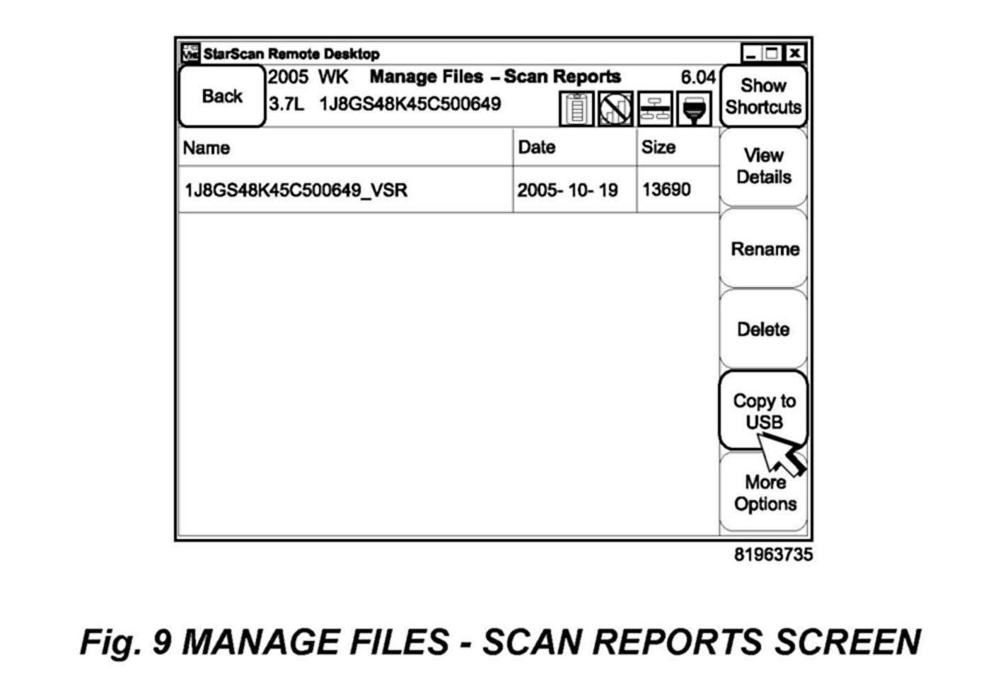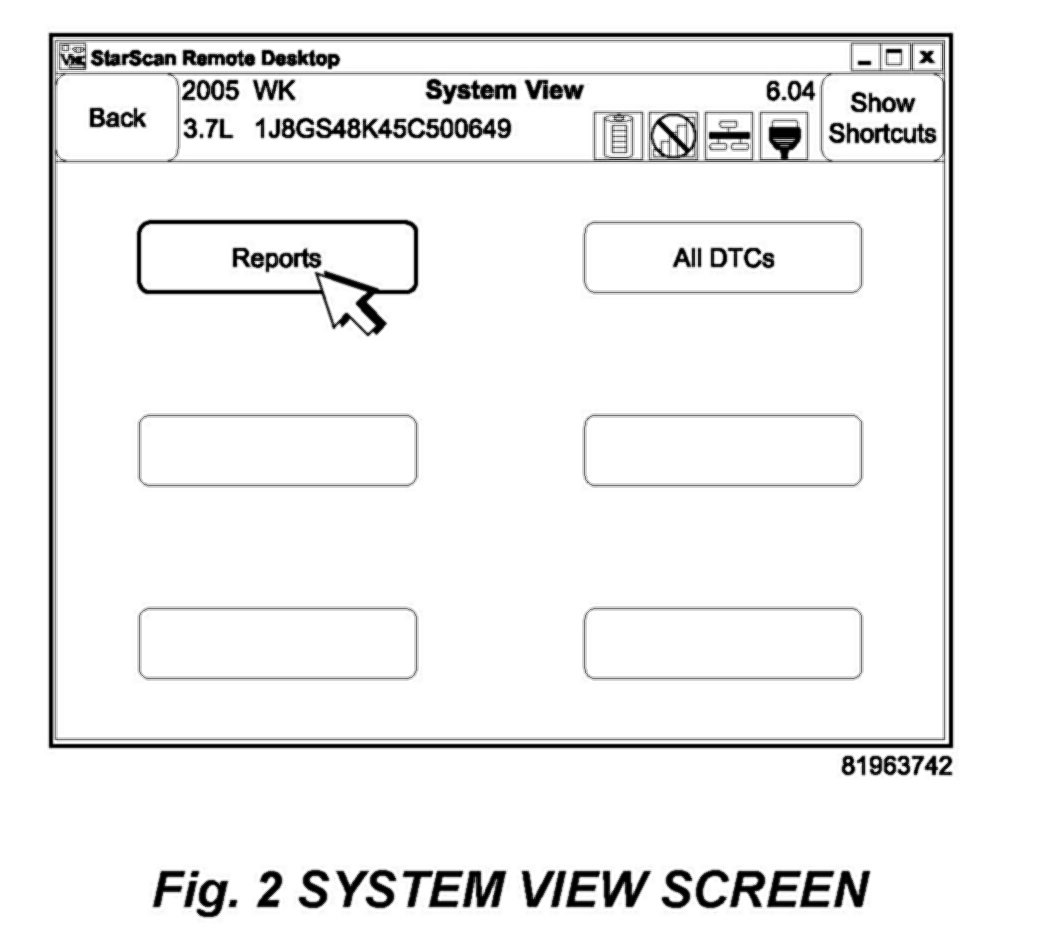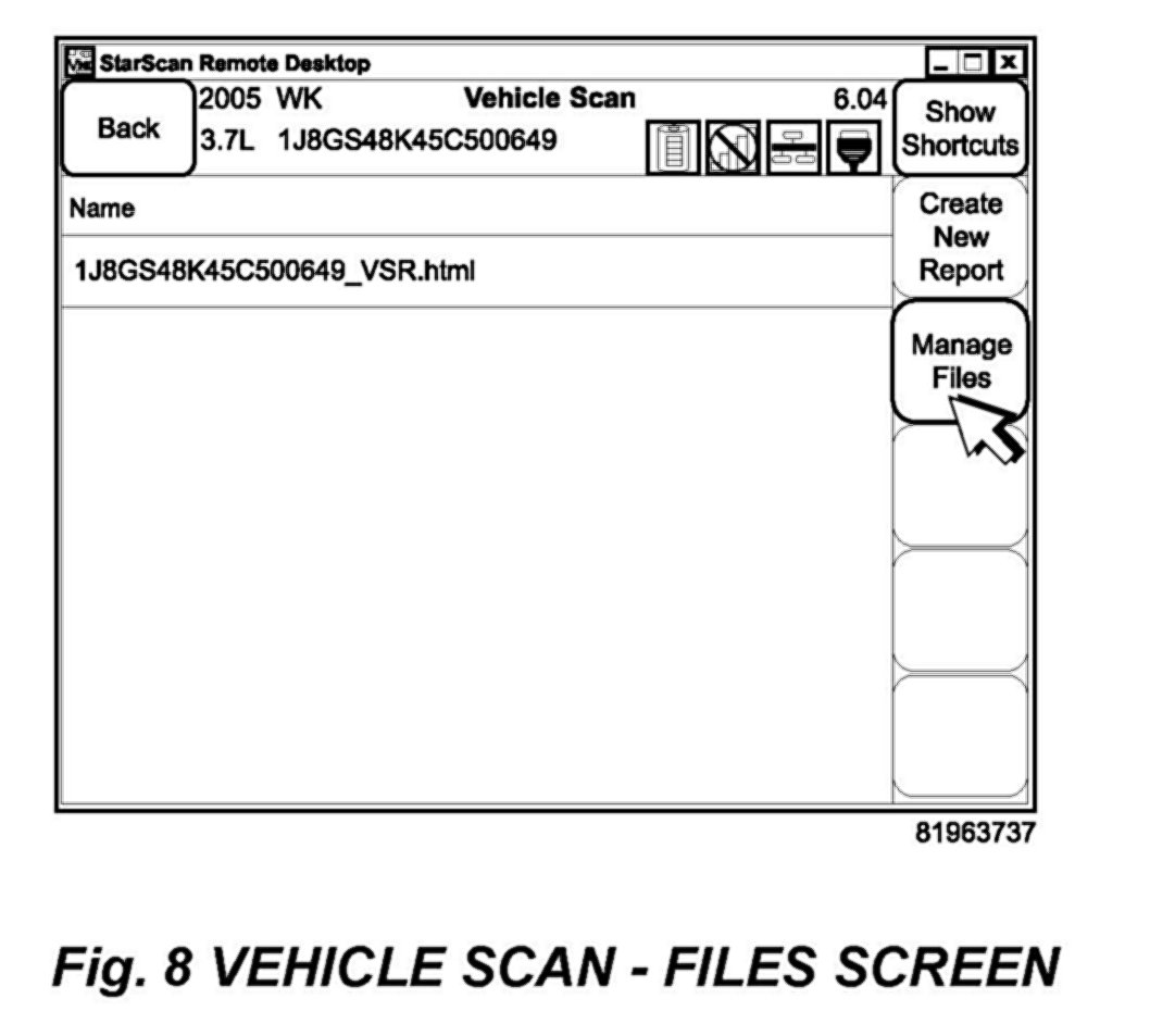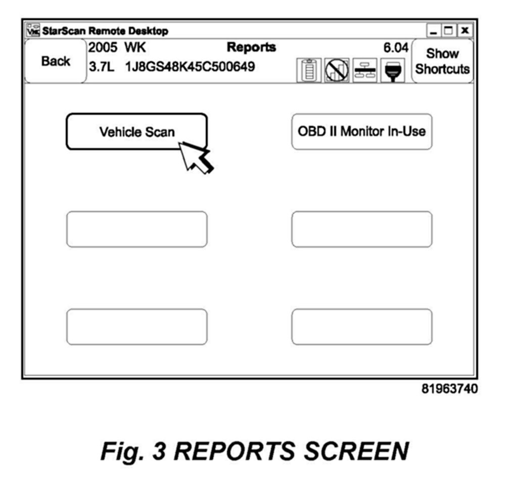 The following procedure explains how to create a Vehicle Scan Report. This report provides you, the technician, a valuable tool in diagnosis, repair, and repair verification of today's vehicles. By incorporating this into the DaimlerChrysler's 6-Step Troubleshooting process, the results will be repairs that take less time and increase your Fixed-First-Visit scores.