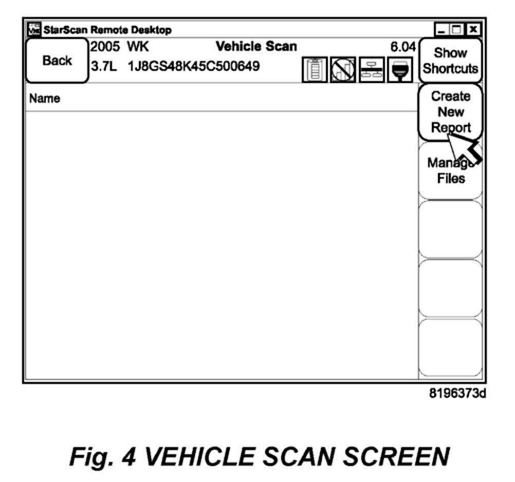 5. The following screen shows an empty Vehicle Scan screen (since there are no previous reports). Select "Create New Report" (Fig. 4).