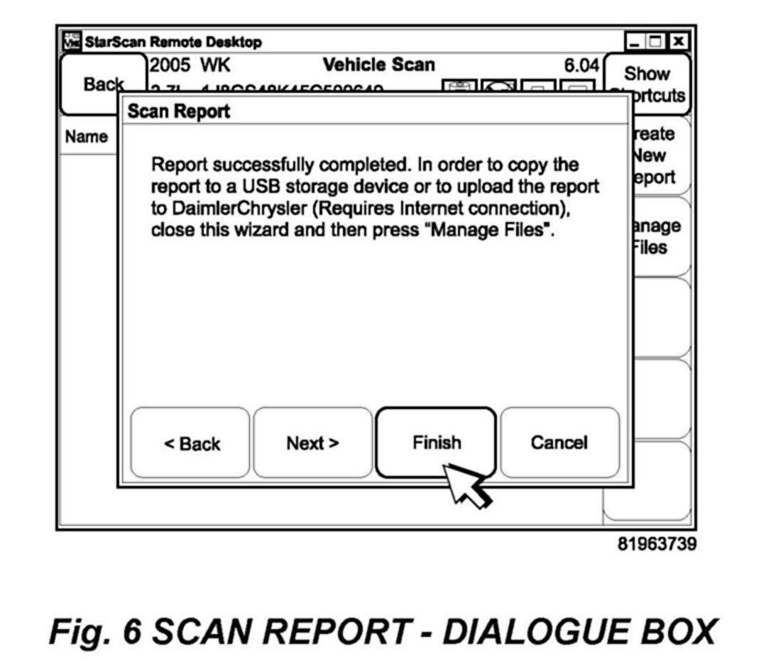 7. The word "Scanning" will appear. After the report is created, the following "Scan Report" dialogue box appears. Select "Finish" (Fig. 6).
