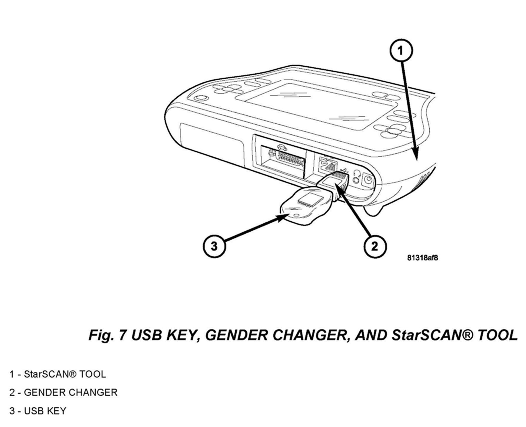 8. Connect the USB Key and Gender Changer to the StarSCAN(R) USB port (Fig. 7).