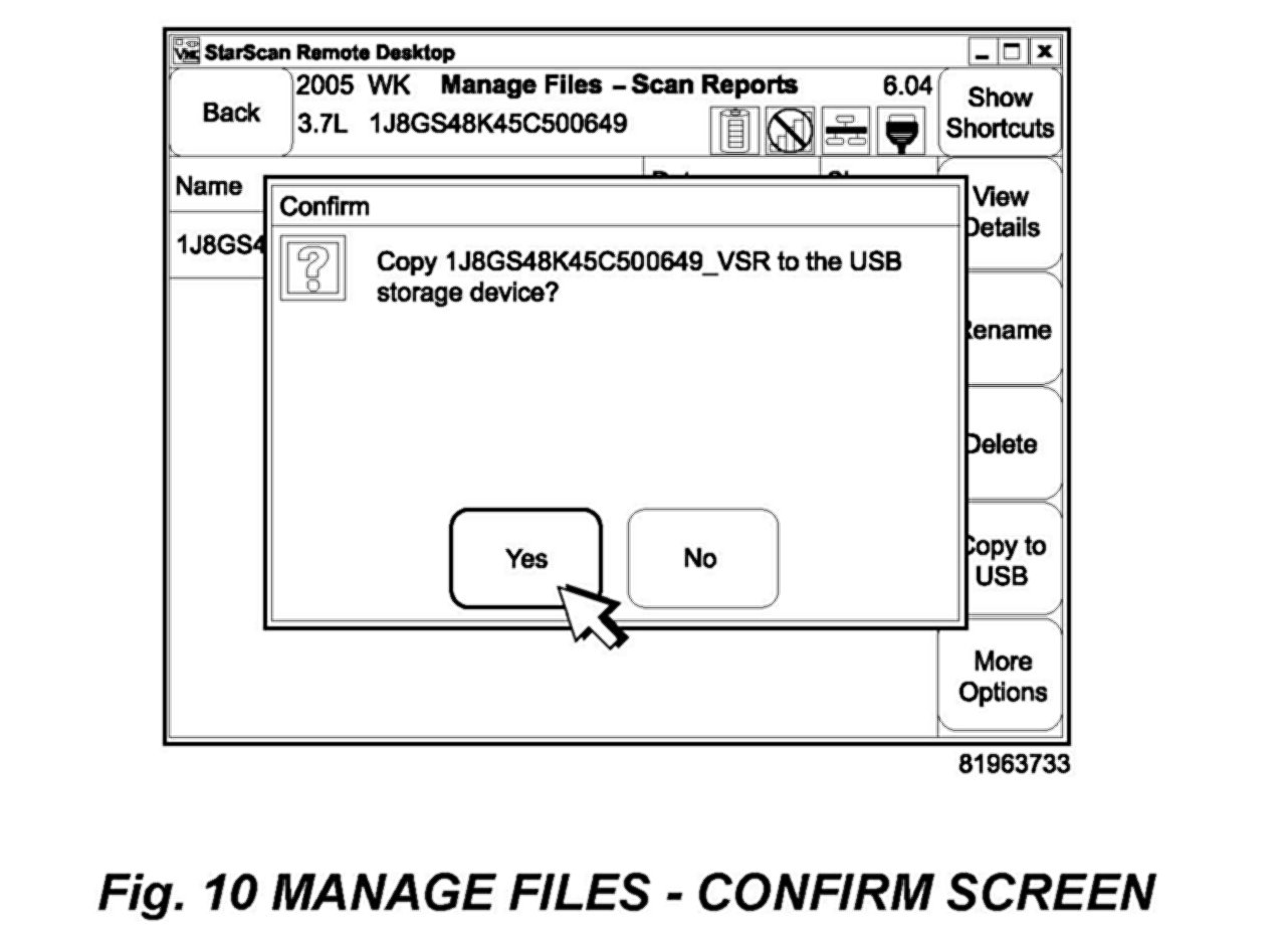 11. A "Confirm" dialogue screen appears to verify. Select "Yes" (Fig. 10).