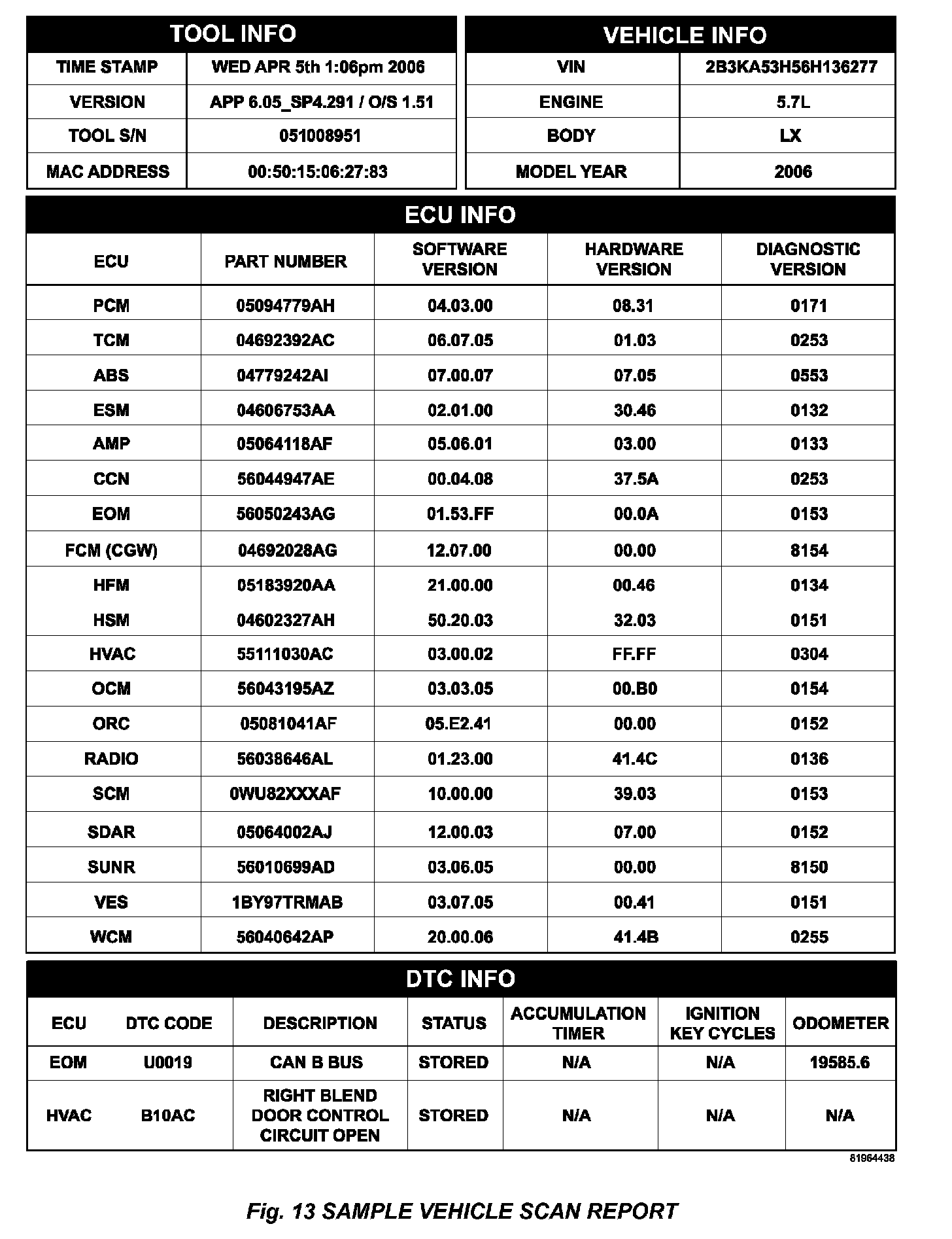 20. Make an after repair Vehicle Scan Report for repair verification. Staple all reports to the hard copy of the repair order when the repair is complete (Fig. 13).