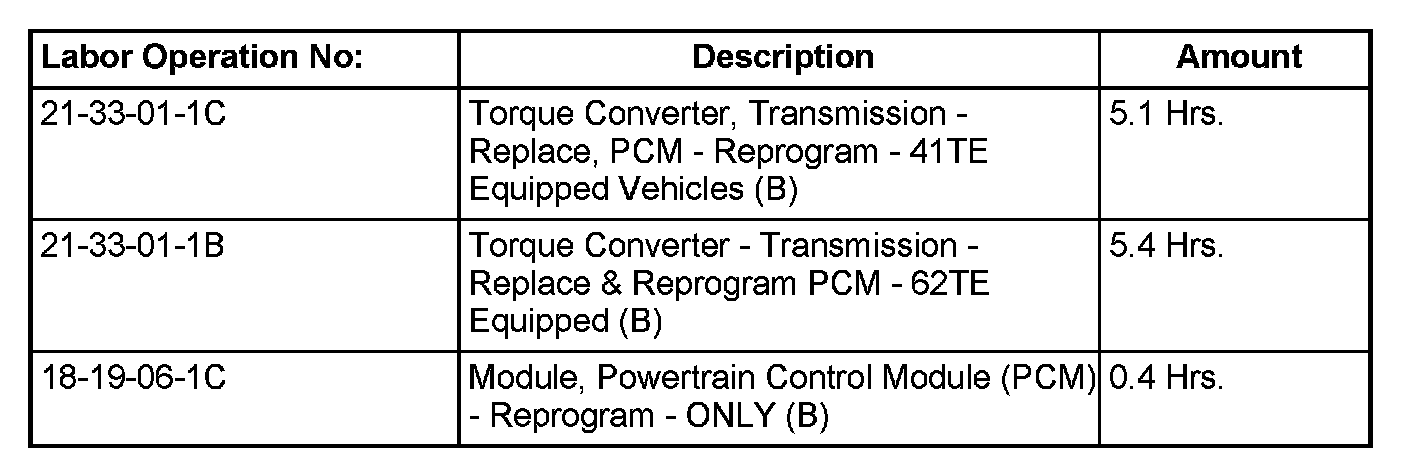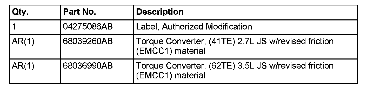 2. Replace the Torque Converter - Use the appropriate part number listed in the parts table above - Follow detailed service procedures listed in DealerCONNECT > TechCONNECT for Torque Converter replacement.