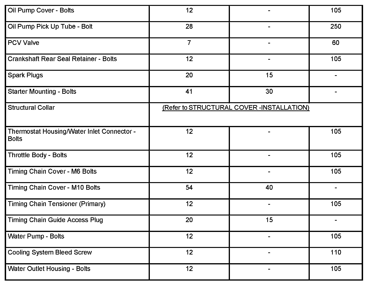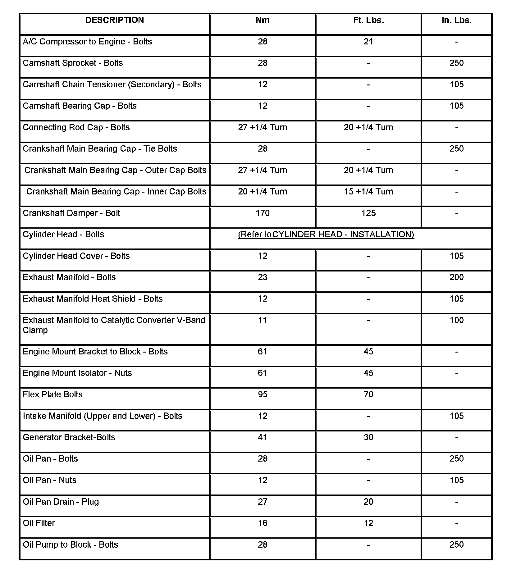 Engine Torque Specifications