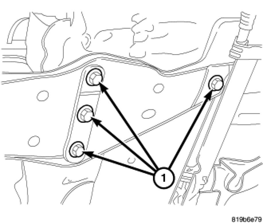 11. Install mount through bolt (1) and tighten to 47 Nm (35 ft. lbs.).